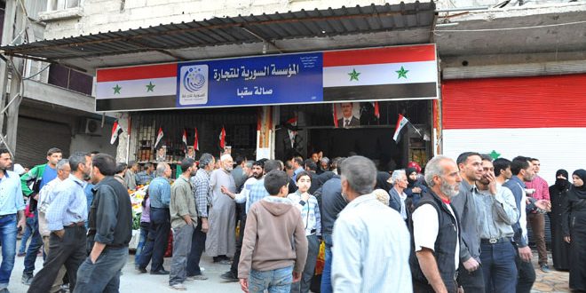 Establecimiento Sirio para el Comercio y después de la rehabilitación de sus salas abrió seis salas y puntos de venta en las ciudades de Harasta, Saqba, Ein Tarma, Irbin y Kafarbatna, donde se encuentran todas las necesidades de los ciudadanos de alimentos esenciales y bienes de consumo, así como verduras, frutas y gas.