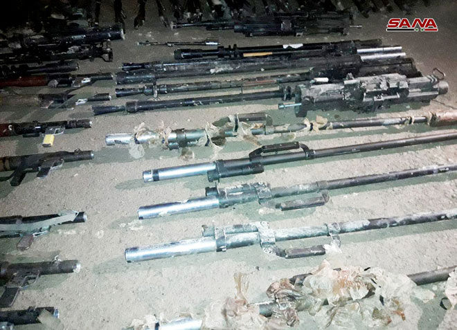 Como parte del acuerdo para su salida de Duma hacia la ciudad de Jarablus en Alepo en el norte del país, los terroristas del “Ejército del Islam” entregaron el primer grupo de sus armas medianas.