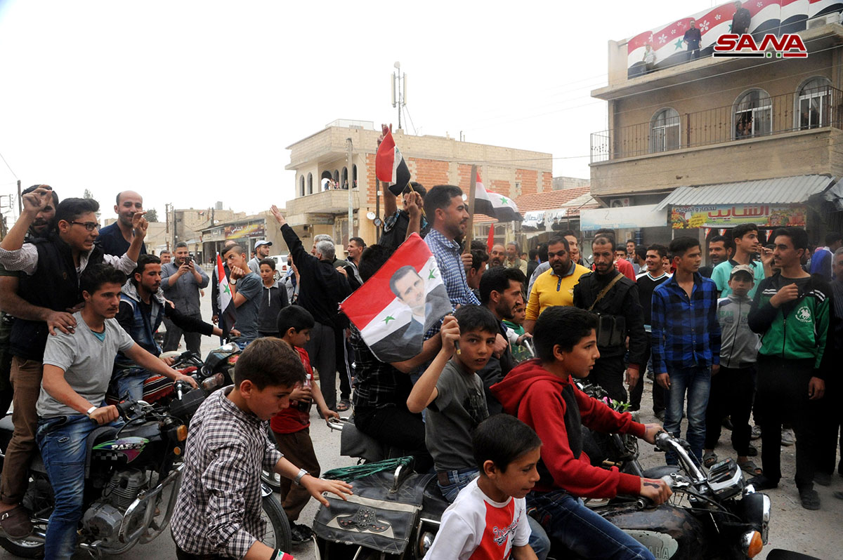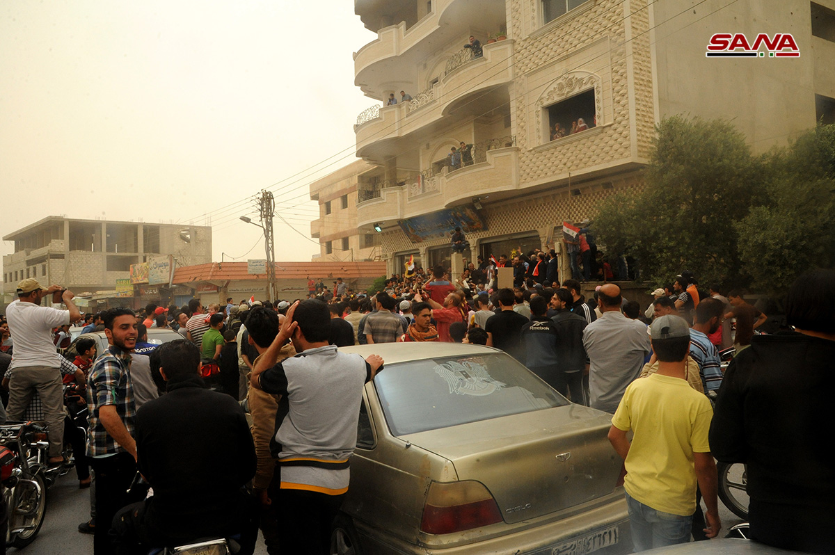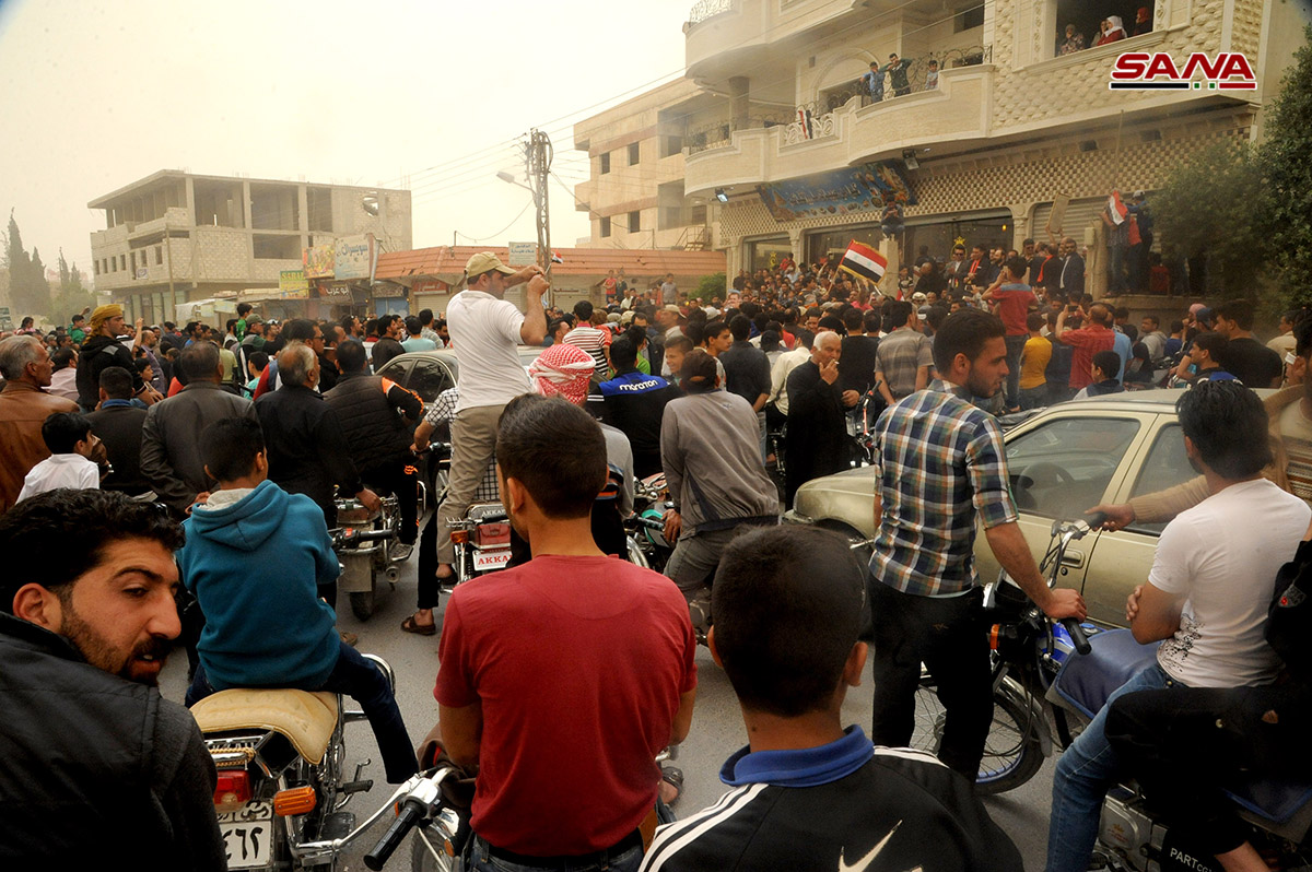 Centenares de habitantes de las localidades de al Rheibe, al Nasiriya y al Atneh en Qalamun Este se concentraron para manifestar su júbilo por su liberación del terrorismo y la entrada de las fuerzas de Seguridad Interna.