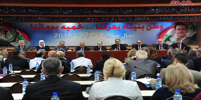La clase obrera siria celebra el Primero de Mayo de este año, en momentos en que la patria Siria enfrenta una guerra feroz desatada por potencias agresivas que continúan trazando sus complots contra las luchas y aspiraciones de los pueblos. Al frente de estas potencias hostiles está la administración estadounidense, la Entidad Sionista, los gobiernos occidentales, las monarquías del Golfo y Turquía, que siguen apoyando a las organizaciones terroristas.