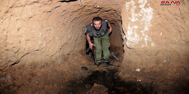 En las parte liberada de Hayyar Asswad, el ejército halló durante sus operaciones de peinando, a redes de túneles cavadas debajo de las casas y los edificios y fueron usadas por los terroristas para protegerse y trasladarse debajo tierra.