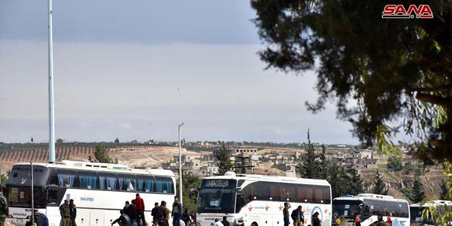 El reportero de SANA informó que un número de autobuses procedentes de Hama entraron por la autopista internacional Hama-Homs hacia un punto de agrupamiento en la ciudad de Rastan situada a unos 20 km al norte de la ciudad de Homs para trasladar a los armados no deseosos del arreglo y a sus familias hacia Yarablus e Idleb.