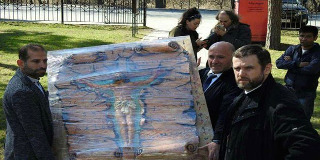 Abdul Salam, que es sirio y residente en Rusia, aclaró que el cuadro refleja a Jesucristo y a la Cruz, y aparece en ella letras en arameo y su equivalente en árabe, y es una muestra de gratitud a esta catedral por su apoyo al pueblo sirio.