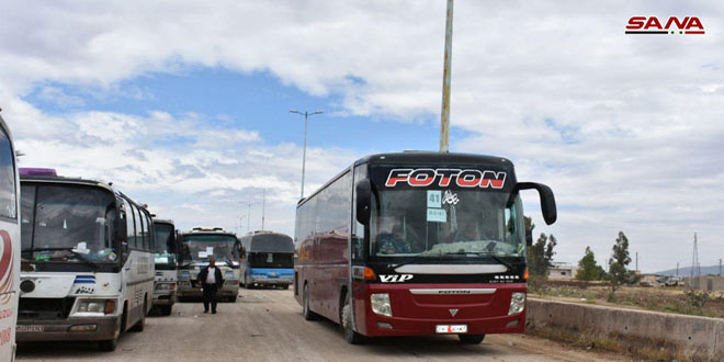 Decenas de autobuses entraron a las localidades del campo norte de Homs y sur de Hama a través del corredor de Samalil, con el fin de continuar el proceso de salida de terroristas y sus familiares hacia el sur de la provincia de Idleb.