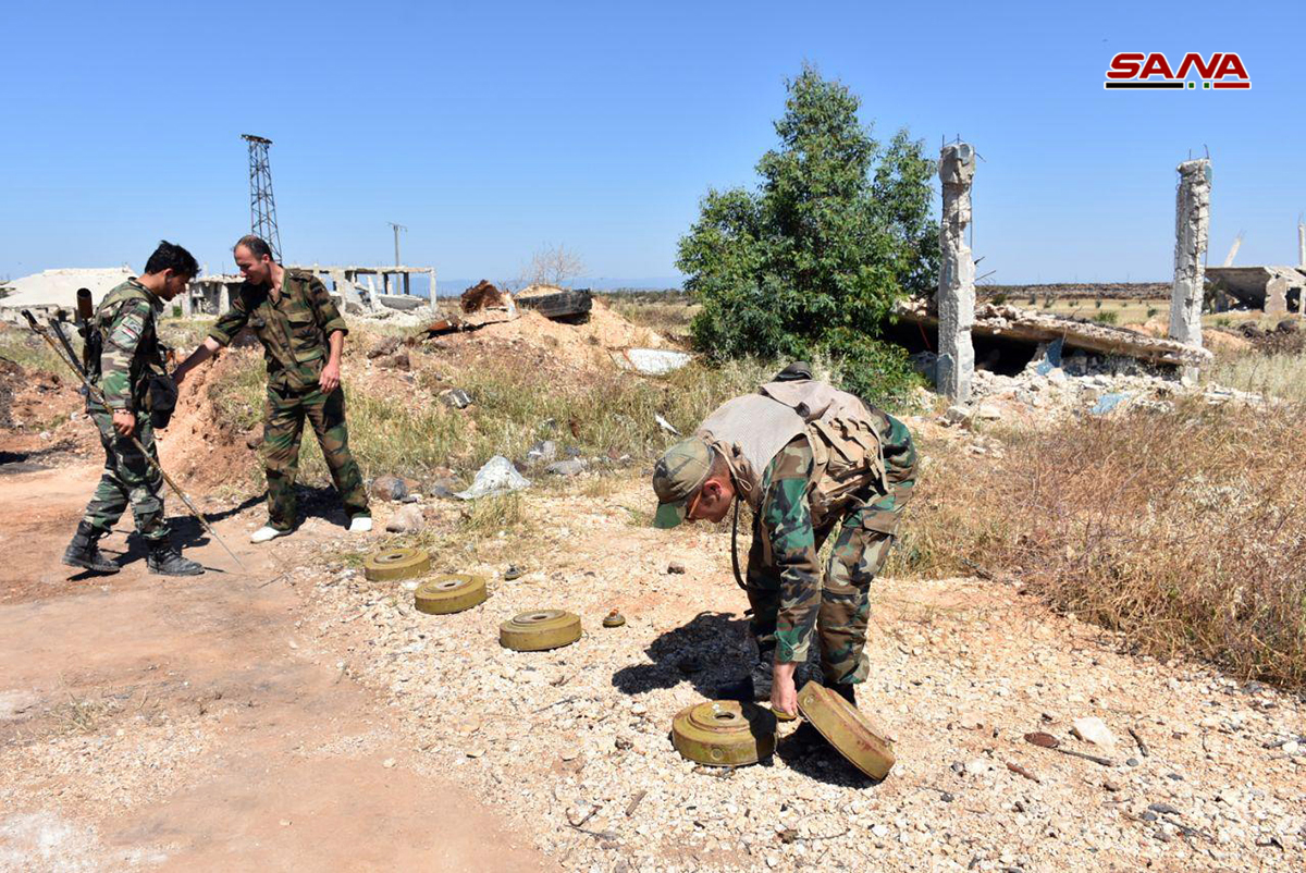 En declaraciones a SANA una fuente militar informó que los zapadores del Ejército desmantelaron las barricadas y neutralizaron decenas de minas colocadas por los terroristas la entrada principal de la dicha localidad antes de su salida hacia el norte de Siria.