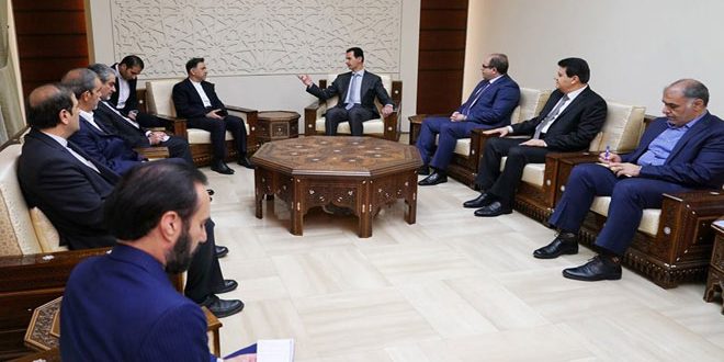 El presidente Bashar al Assad recibió al ministro de Carreteras y Desarrollo Urbano iraní Abbas Akhoundi y la delegación acompañante.