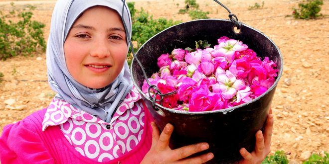Los campos de la rosa cubren una superficie de 2.000 dunum de la aldea de al-Mrah, conocida en el pasado por ¨Qeldoun¨, la cual es considerada el lugar de nacimiento del cultivo de las rosas.