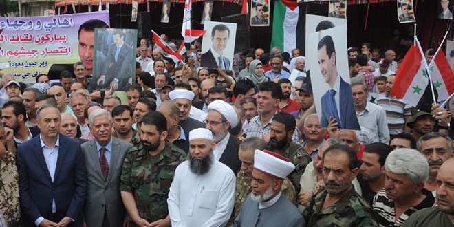 Miles de pobladores del sur de Damasco se concentraron este lunes para celebrar la liberación de sus localidades del terrorismo.
