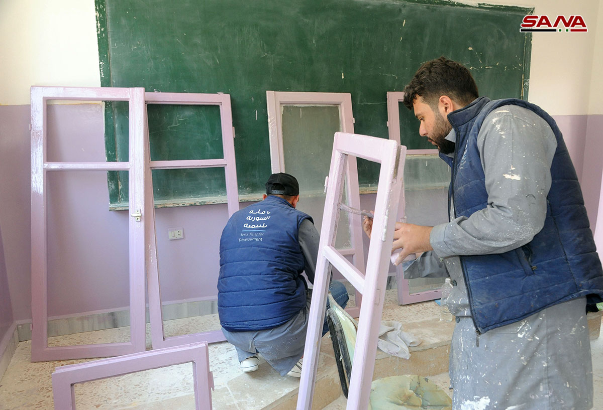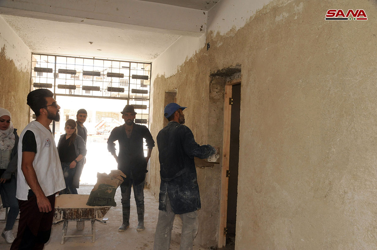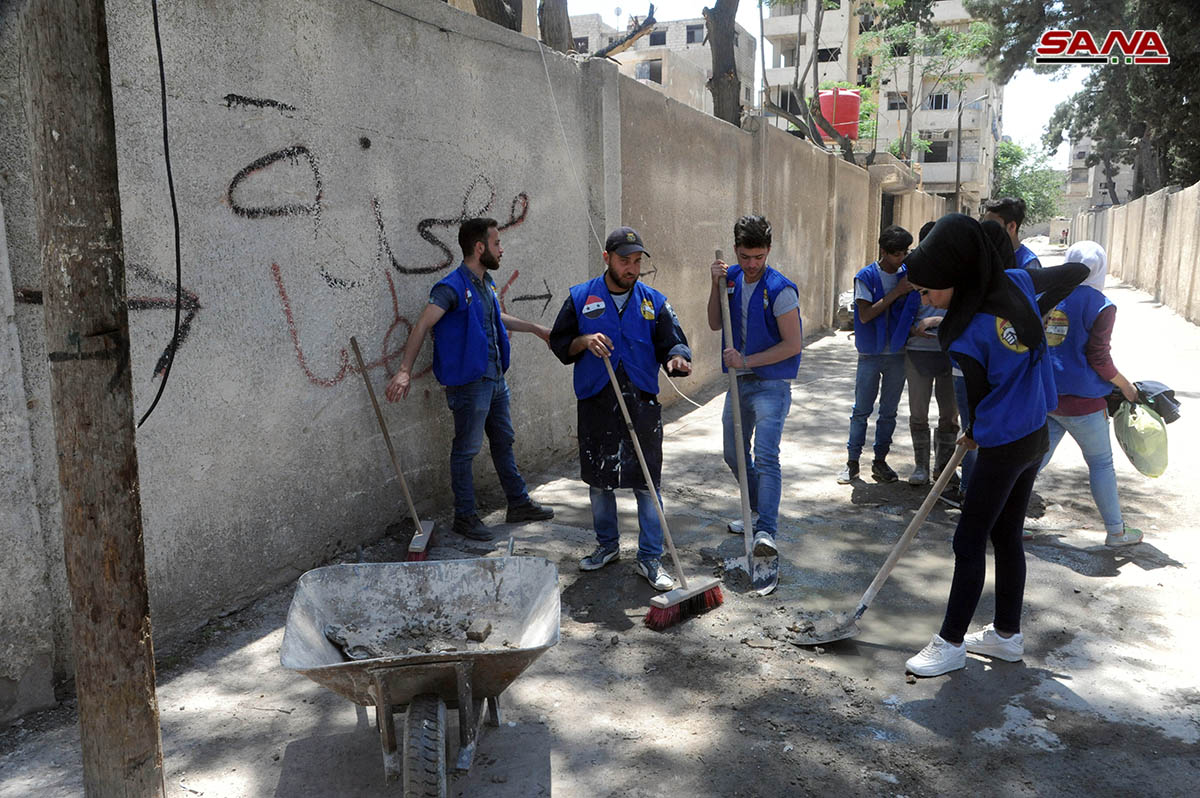 Voluntarios de distintas edades y especializaciones han iniciado hace un mes una campaña para rehabilitar escuelas, clínicas, calles y plazas públicas afectadas por el terrorismo en varias localidades de Ghouta Oriental y Occidental.