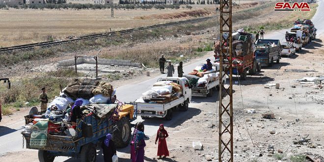 Varias familias desplazadas volvieron a sus localidades liberadas del terrorismo por el Ejército sirio en el campo de Alepo e Idleb, a través del corredor de Abu al Duhur en la comarca sureste de Idleb.