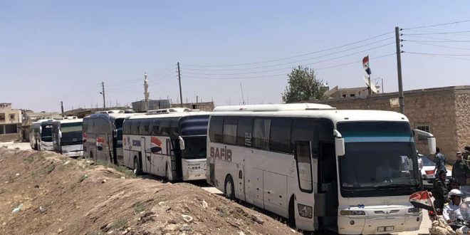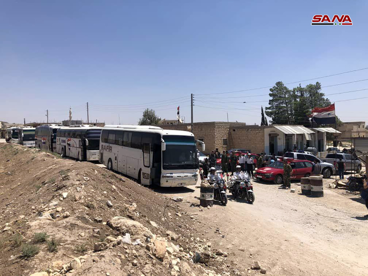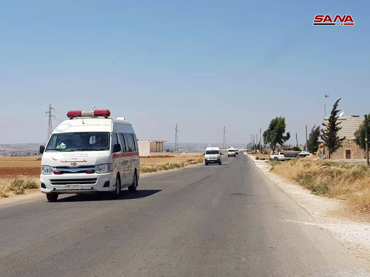 En este contexto, el reportero de SANA informó que más de 121 autobuses acompañados por decenas de ambulancias de la Media Luna Roja Árabe Siria entraron a través del paso de Al-Eis en el campo sur de la provincia de Alepo.