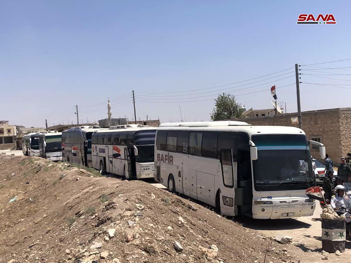 Decenas de autobuses y ambulancias entraron en las localidades de Kafraya y Foa en la provincia de Idleb, para sacar a los civiles asediados por los terroristas en esas dos localidades.