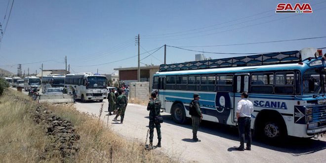 El corresponsal de SANA en las inmediaciones de la localidad de Um Batna informó que decenas de autobuses entraron en la localidad para llevar la segunda tanda de terroristas hacia el norte de Siria.