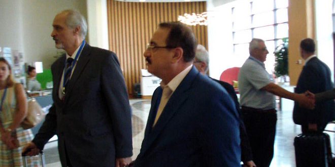 La delegación de la República Árabe Siria presidida por Bashar al Jafaari a la décima ronda de las conversaciones de Astaná, celebrada en Sochi, se reunió con la delegación iraní presidida por Hussein Jaberi Ansari, asistente principal del ministro de Exteriores iraní para los asuntos políticos.