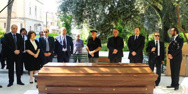 Importantes figuras oficiales, intelectuales y artistas despidieron esta mañana al fallecido escritor Hanna Mine en el Hospital Francés de Damasco antes de que su cortejo fúnebre se dirigiera a su ciudad natal en la provincia costera de Latakia.