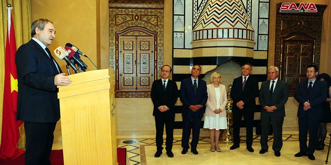 El Ministerio de Asuntos Exteriores y Expatriados celebró hoy una ceremonia de despedida en el hotel Four Seasons en Damasco, al Embajador de China Qi Qianjin, con motivo de terminar su misión como embajador de su país ante la República Árabe Siria.