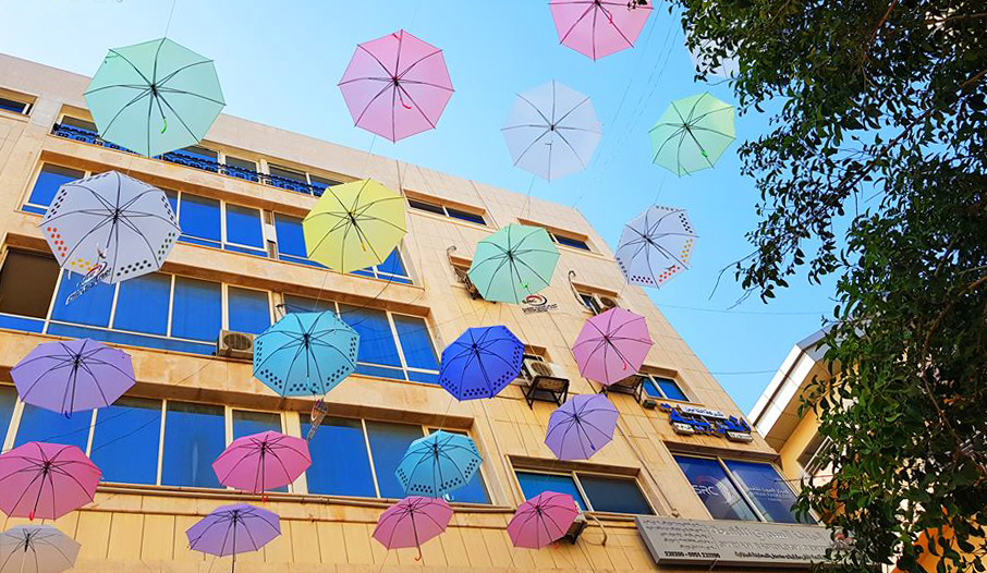 La radióloga, Dra. Mais Aboud, informó que el Centro decidió participar en esta campaña a través de colgar paraguas de diferentes colores en la calle al Manshiye donde se encuentra el mismo con el fin de llamar la atención de los caminantes, especialmente las mujeres, a la importancia del tema de detección temprana del cáncer de mama y su papel en alcanzar un porcentaje de curación más alto.