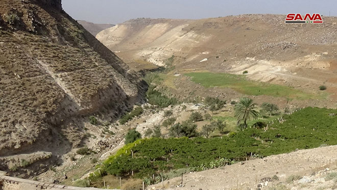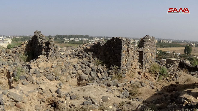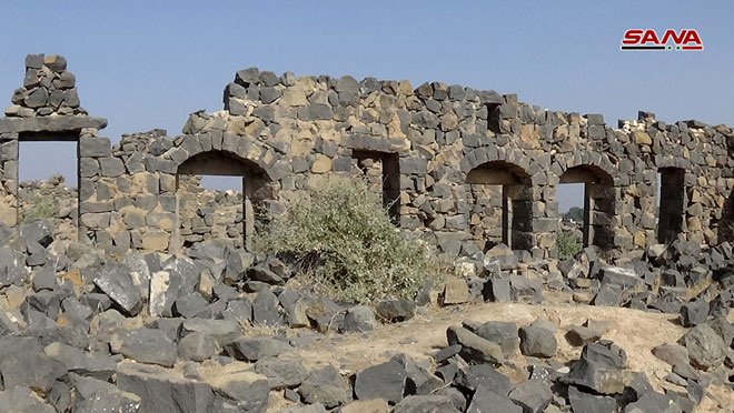 La ciudad de Tal Shehab se encuentra al oeste de la ciudad de Daraa, a 17 kilómetros de distancia, y se caracteriza por sus vistas pintorescas y las laderas que descienden sobre la valle de Khaled y está decorada con antiguas murallas y molinos romanos.