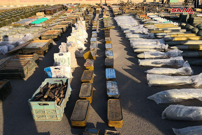 Las autoridades competentes hallaron grandes cantidades de armas, proyectiles y vehículos remanentes de los terroristas, algunos de fabricación israelí, en las zonas liberadas en los campos de Deraa y Quneitra.