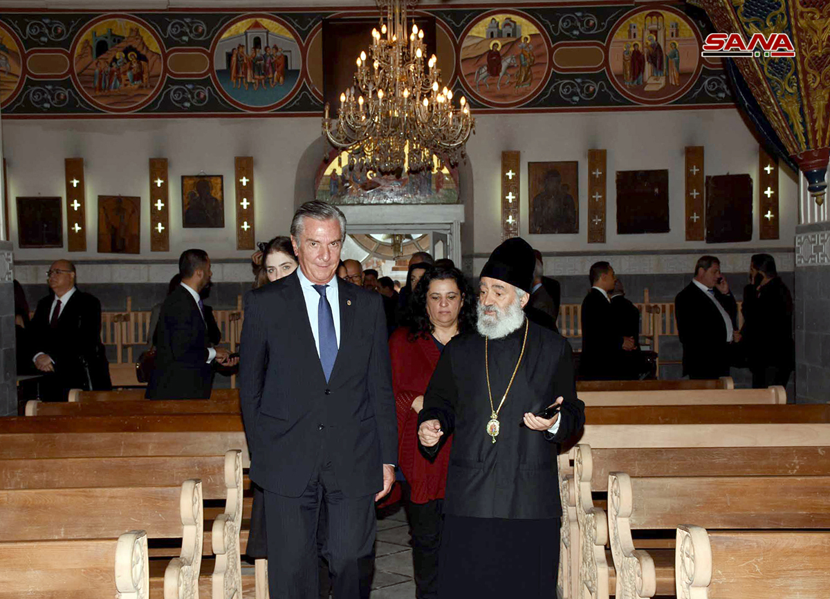 A su vez, el padre Toni Sobha de la Iglesia de Umm al-Zanar explicó la historia de la iglesia, que se remonta al primer siglo cristiano, lo que indica que es la tercera iglesia más antigua del mundo y guarda el cinturón de la Virgen María y trabaja constantemente por su renovación y cuidado, e hizo alusión a la destrucción sistemática de la iglesia por los terroristas.