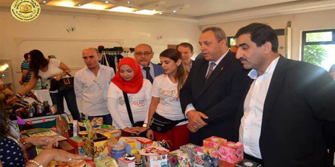 En el bazar se exhiben muestras de productos, dulces, mosaico damasceno, y joyas tradicionales de Siria, además de artículos de artesanía fabricados por mujeres sirias dentro de Siria y en Nigeria.