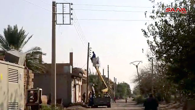 En el marco de los esfuerzos del gobierno encaminados a restaurar los servicios básicos en las zonas liberadas por el Ejército sirio, se ha restablecido hoy la corriente eléctrica a la ciudad de Mayadin, provincia de Deir Ezzor, tras 4 años de estar interrumpida debido a actos terroristas.