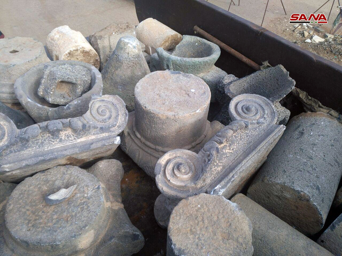 El Departamento de Antigüedades de la provincia de Daraa recuperó más de un centenar de piezas de antigüedades de una casa en la localidad de Al-Giza.