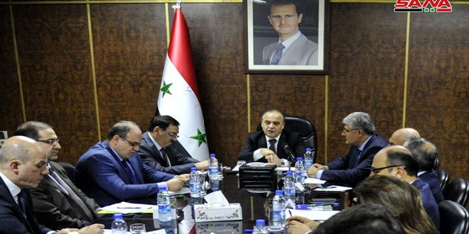 El primer ministro, Imad Khamis, encabezó este martes una reunión de representantes del sector bancario público en la sede del Banco Comercial de Siria.