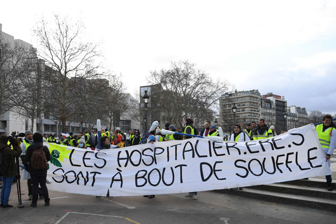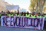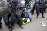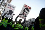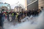 Los participantes izaron pancartas de repulsa a las políticas de Macron y exigiendo su dimisión y la salida de Francia de la Unión Europea, en respuesta la policía empleó la fuerza y lanzó gases lacrimógenos.