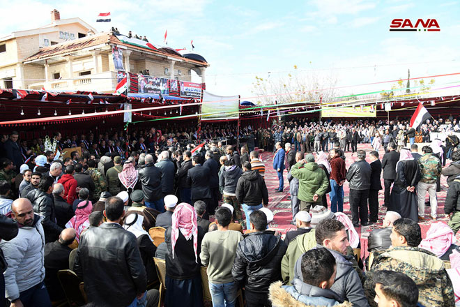 Bajo los auspicios del presidente Bashar al-Assad, la Federación General de Campesinos realizó hoy un acto central por 54º aniversario de su creación, el evento tuvo lugar en la localidad de Sasa en el extrarradio de Damasco.