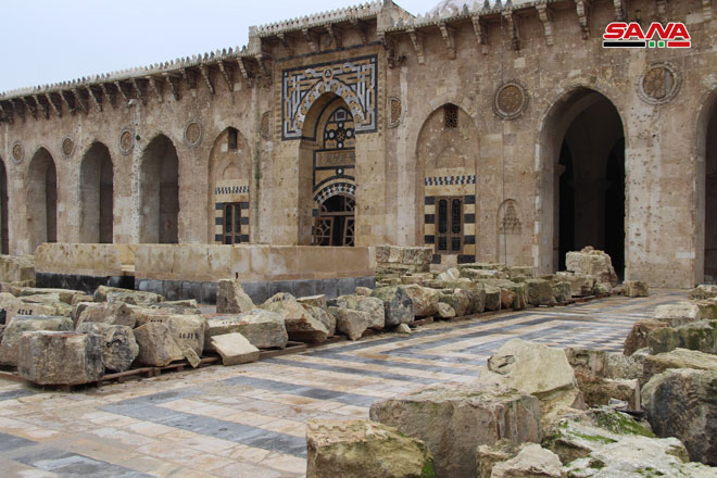 Los trabajos de reparación de la Gran Mezquita de los Omeyas en la ciudad de Alepo marcha a pasos precisos abarcando cada piedra allí que fuese alcanzada por el terrorismo que pretendía borrar los rasgos de ese monumento arqueológico que había resistido los peores terremotos en el pasado.