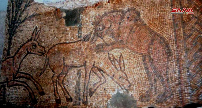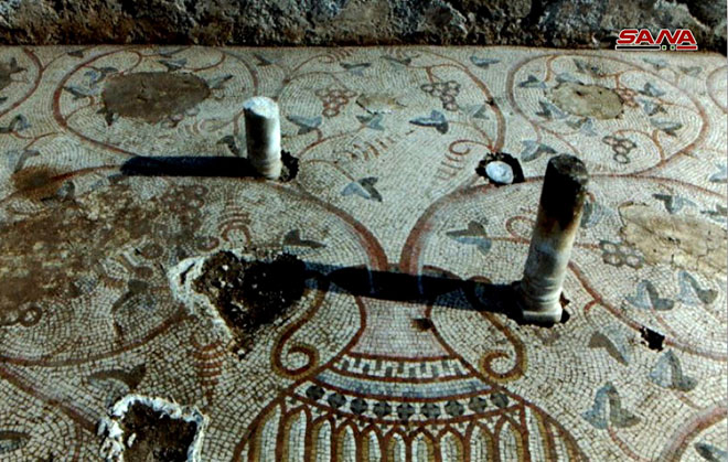 El mosaico era uno de los artes antiguos utilizados para decorar los pisos de las edificaciones, y este mosaico en la iglesia de Heit refleja el nivel alto del arte del mosaico alcanzado en el sur de Siria.