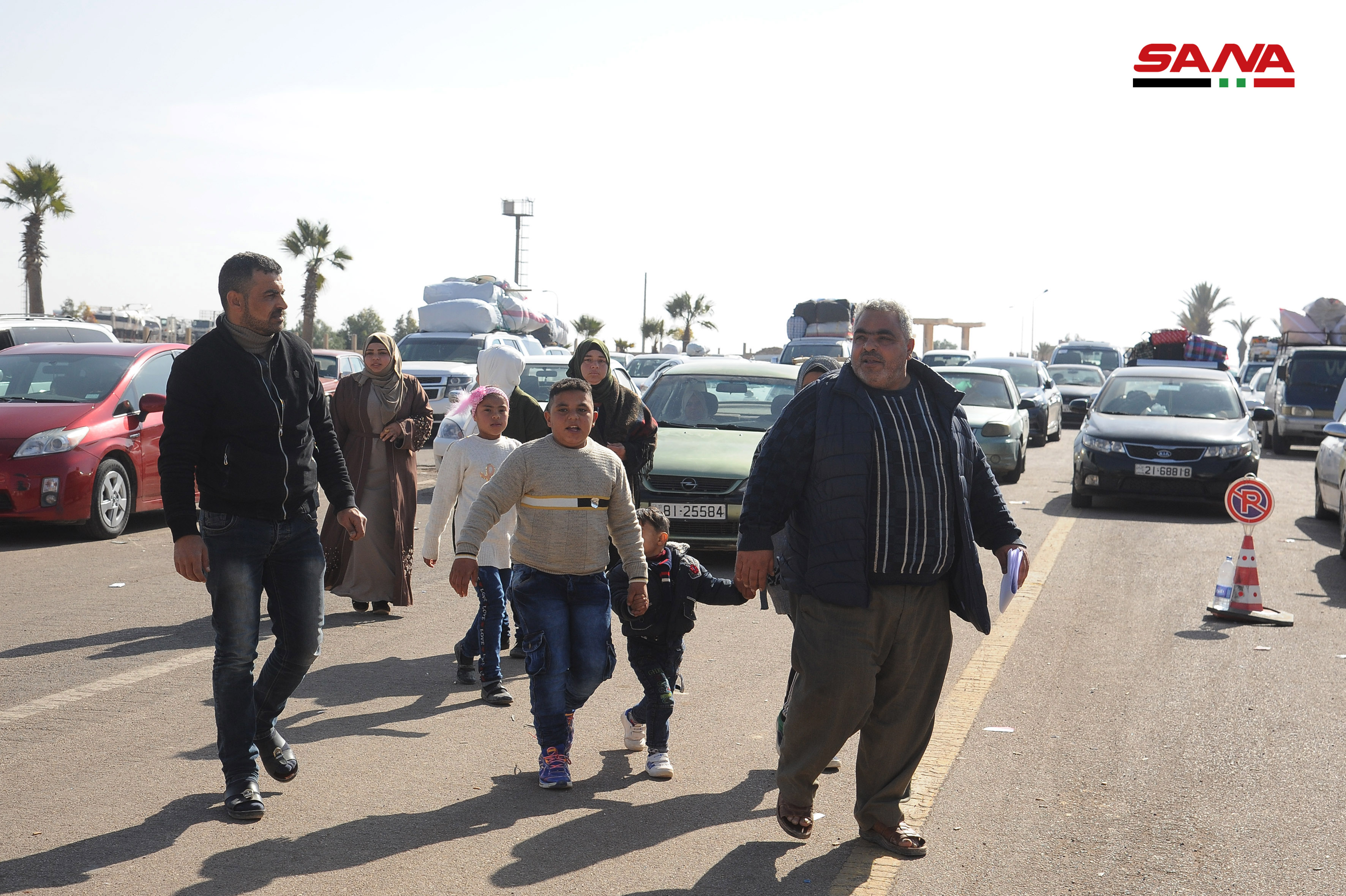 “Decenas de familias que residían en los campamentos de refugiados en Jordania, retornaron hoy al país a través de cruce fronterizo de Nassib Jabber”, informó la reportera de SANA en Deraa.