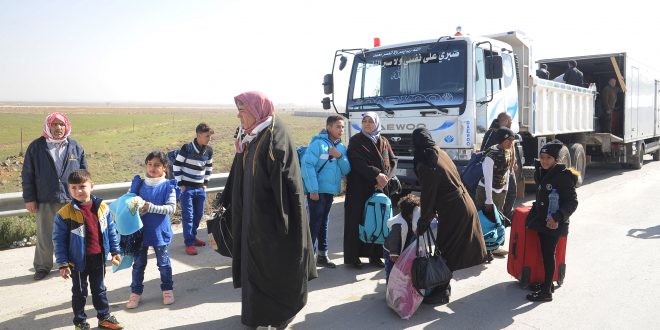 Además de los equipos médicos que prestaban chequeos médicos y vacunación gratuita, la Gobernación de Deraa puso medios de transporte gratuitos para trasladar a los refugiados retornados a sus poblados.