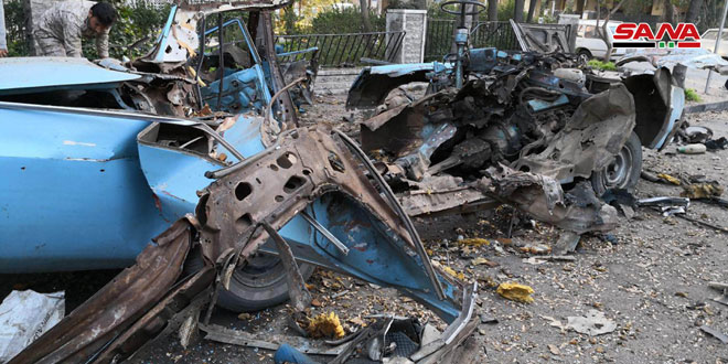 “Una bomba colocada dentro de un coche explotó este mediodía, lo que provocó la destrucción total del coche y daños materiales en otros coches parqueados en el lugar, además de la caída de los vidrios de las ventanas de los edificios residenciales cerca del lugar del atentado”, informó el reportero de SANA.