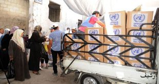 Reparten 2400 canastas de alimentos a los desplazados del campo Yarmuk