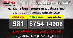 دمشق-سانا امروز وزارت بهداشت از شفای 75 نفر از مبتلایان به کرونا و شناسایی 43مورد جدید ابتلا وفوت 3 نفر از مجموع مبتلایان به این ویروس در کشور خبر داد. …