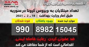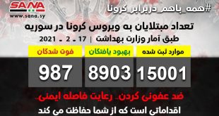 دمشق-سانا امروز وزارت بهداشت از شفای 79 نفر از مبتلایان به کرونا و شناسایی 44مورد جدید ابتلا وفوت 3 نفر از مجموع مبتلایان به این ویروس در کشور خبر داد. …