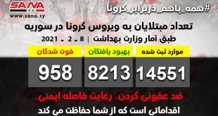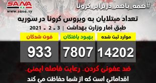 دمشق-سانا امروز وزارت بهداشت از شفای 85 نفر از مبتلایان به ویروس کرونا و شناسایی 65 مورد جدید ابتلا و فوت 5 نفر از مجموع مبتلایان به این ویروس در …