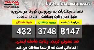 دمشق-سانا امروز وزارت بهداشت از شناسایی 88 مورد ابتلا به ویروس کرونا وشفای 69نفر وفوت 6 نفر از مجموع مبتلایان به این ویروس در کشور خبر داد. وزارت با صدور …