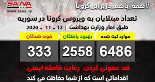 دمشق-سانا امروز وزارت بهداشت از شناسایی 65 مورد ابتلا به ویروس کرونا وشفای 54 نفر وفوت 4 نفر از مجموع مبتلایان به این ویروس در کشور خبر داد وزارت با …