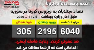 دمشق-سانا امروز وزارت بهداشت از شناسایی 76 مورد ابتلا به ویروس کرونا وشفای 43 نفر وفوت 3 نفر از مجموع مبتلایان به این ویروس در کشور خبر داد وزارت با …
