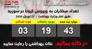 أكمل القراءة »وزارت بهداشت: بهبودی 5 نفر مبتلا به ویروس کرونا در سوریه