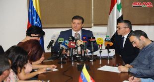 دمشق-سانا سفیر جمهوری بولیفاری ونزوئلا در دمشق خوزیه گریگوریو بیومورجی موساتیس گفت: سیاست متخاصم آمریکا در ازای کشورش وسوریه یکی وهم جهت است سفیر ونزوئلا در جریان نشست مطبوعاتی کع …