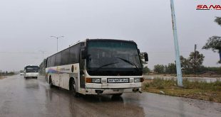 خبرنگار جنگی سانا: روند خارج کردن اتوبوس ها حامل پنجمین سری از تروریست ها و خانواده هایشان از شهرک های یلدا و ببیلا و بیت سحم به مکان تجمع در …