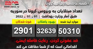 دمشق – سانا وزارت بهداشت از شناسایی 35 مورد جدید ابتلا به ویروس کرونا خبر داد و اعلام کرد، 125 مورد از مبتلیان به کرونا بهبود یافته اند و 4 …