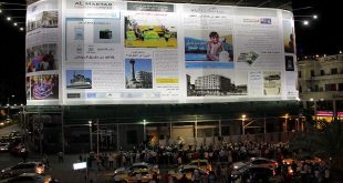 دمشق-سانا دیروز شرکت نزها با همکاری با موسسه تبلیغات سوریه یک نشریه بزرگ بر روی نمای بیرونی هتل ‘سمیرامیس’ دمشق را نصب کردند. مدیر نشریه المکتب با اشاره به …