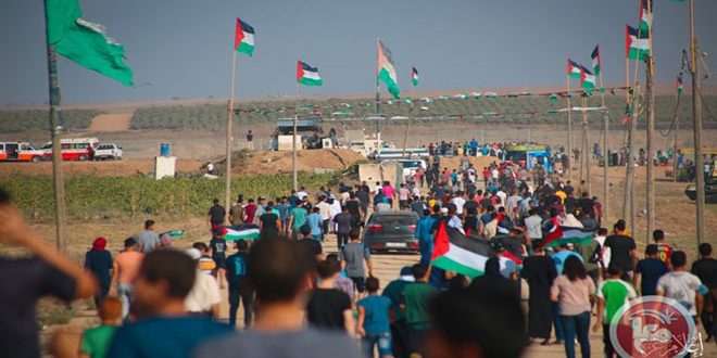 خبرگزاری فلسطینی وفا اعلام کرد: نیروهای اشغالگر با گلوله های جنگی و بمب های گاز سمی شرکت کنندگان در تظاهرات را در شرق غزه وجباليا شمال نوار، بريج در مرکز وخان يونس ورفح در جنوب آن هدف قرار دادند که در نتیجه، ده ها نفر فلسطینی مجروح و دچار حالت خفگی شده اند.