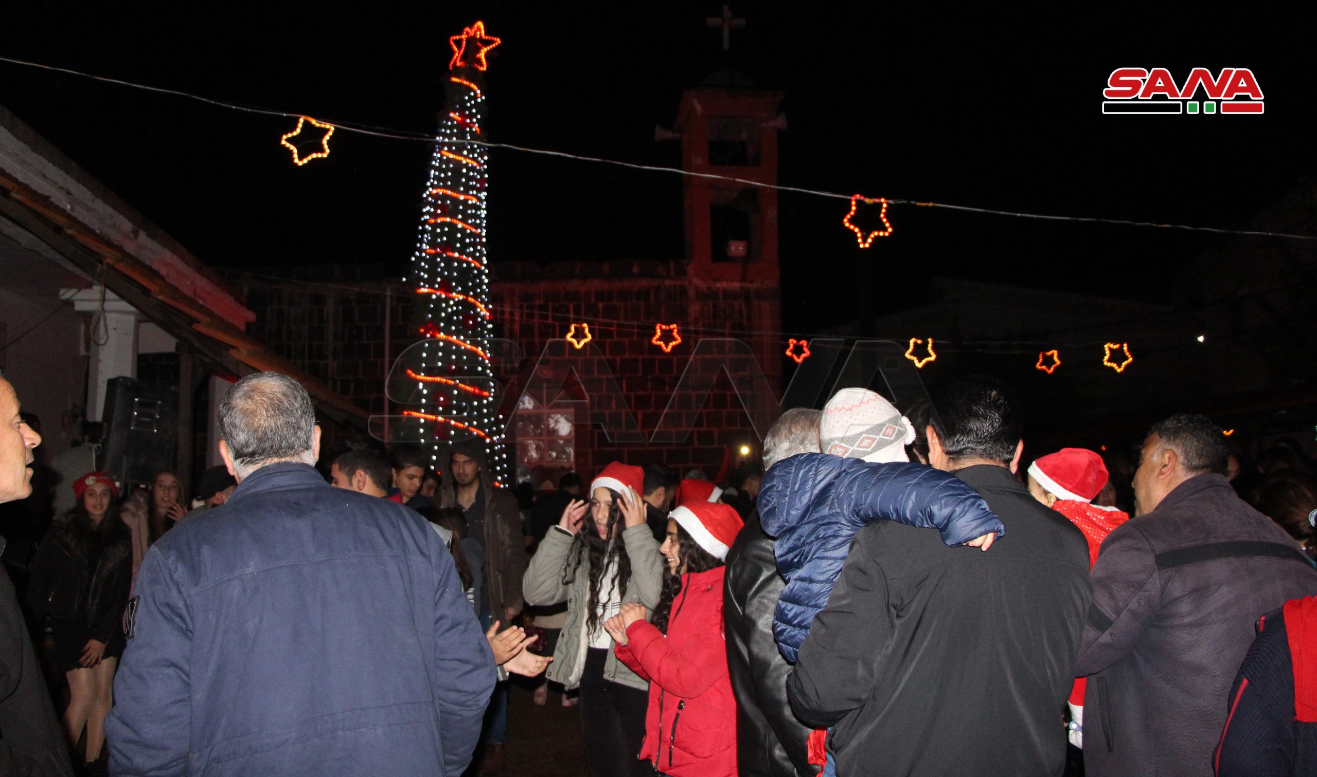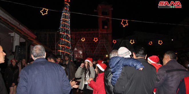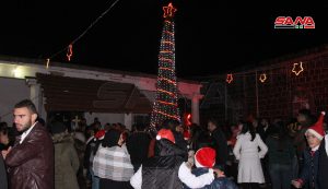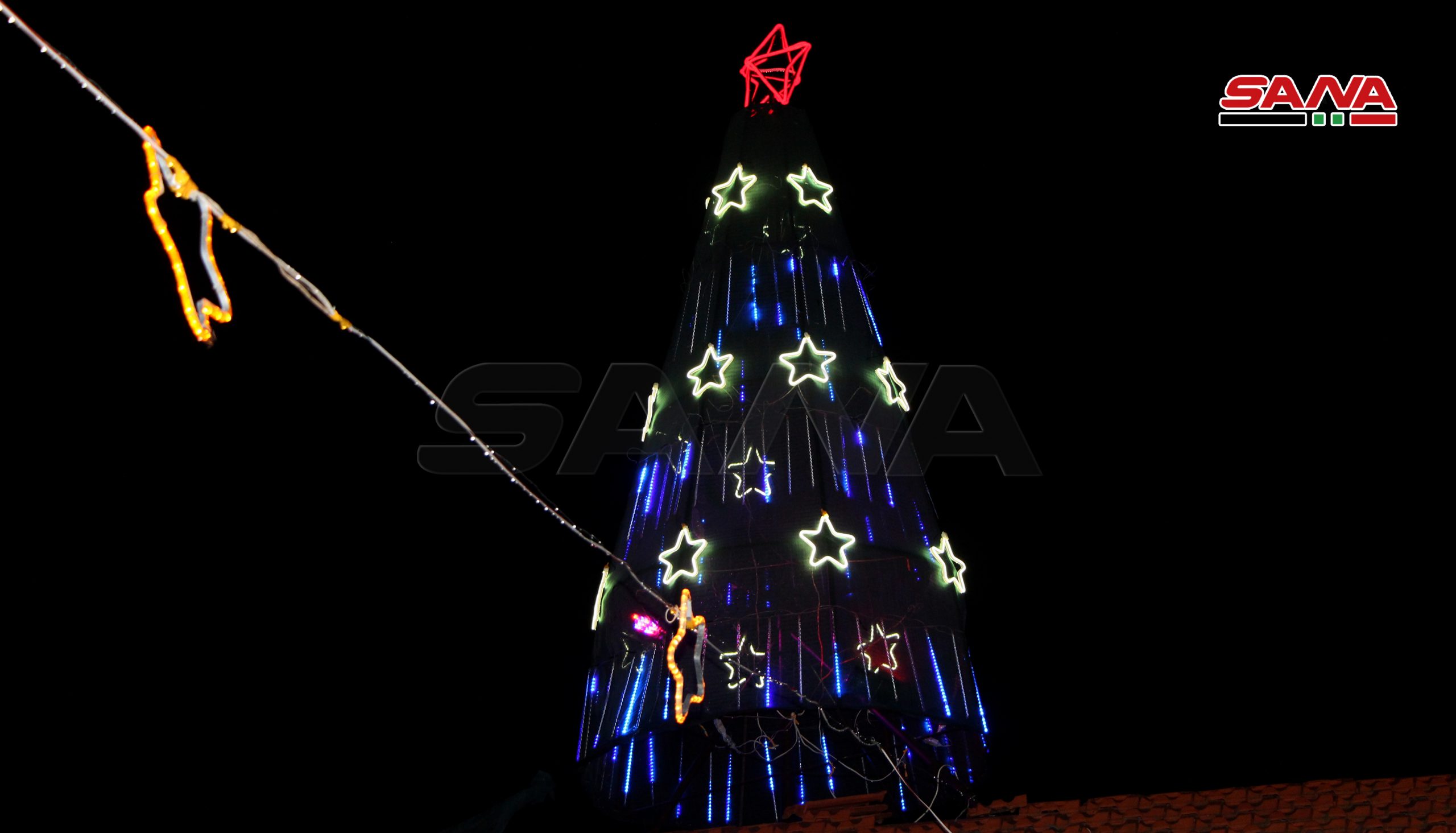 درعا -سانا درخت کریسمس در شهر ازرع در درعا روز پنج شنبه به عنوان بخشی از جشن های کریسمس و سال نو، روشن شد. درعا 2019-12-13 thana