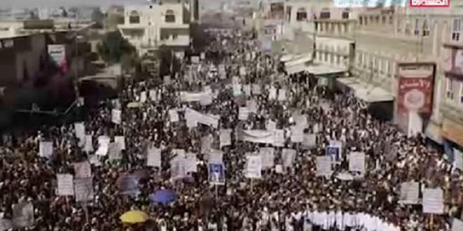 صنعا پایتخت یمن و استان های دیگر این کشور شاهد راهپیما های گسترده مردمی تحت عنوان ( محاصره و اشغالگر آمریکایی جنایات تروریستی است) به منظور محکومیت به ادامه تجاوزات عربستان سعودی علیه ملت یمن و محاصره آن و همچنین فراخواندن به توقف این اقدامات، شد. و در عین حال امروز هم یک حمله بین المللی ضد اشغالگری و محاصره برگزار خواهد شد.